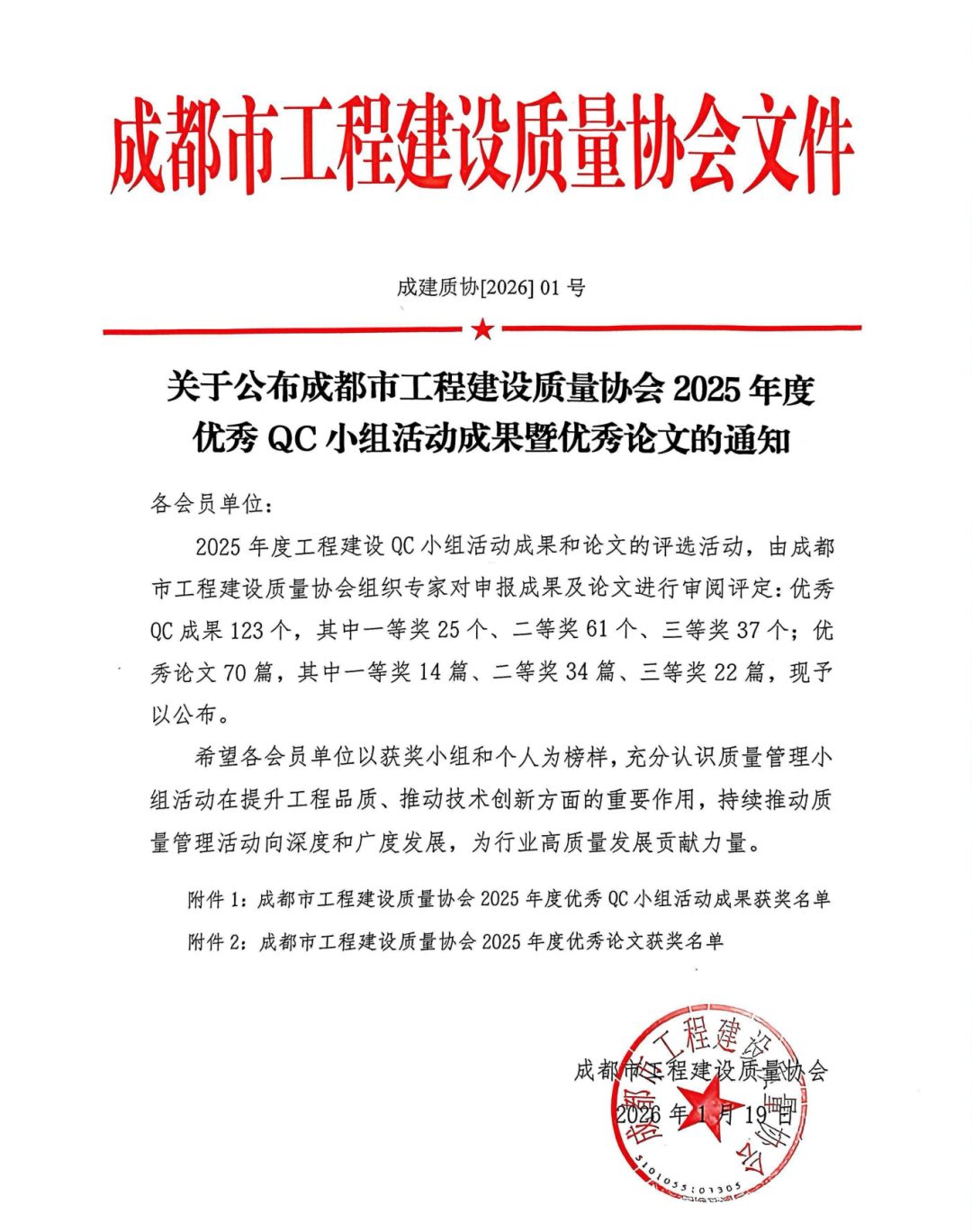 中诚投三项QC成果获成都市工程建设质量协会2025年度成果奖